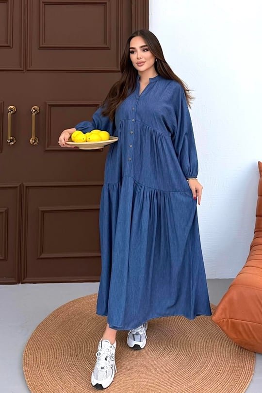 The Skyline Denim Dress offers a blend of casual charm and elegant flow. With its relaxed silhouette, soft denim fabric, and chic gathered hem, it’s your go-to outfit for effortless daytime elegance or a relaxed weekend look.