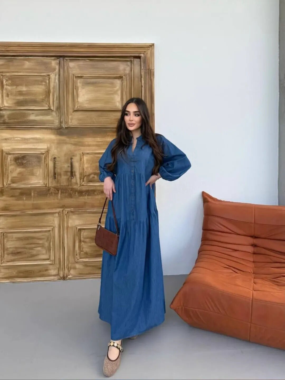 فستان سكايلاين الدنيم بلونه الأزرق الفاتح ولمسته الانسيابية هو الخيار المثالي لإطلالة أنيقة وعصرية في نفس الوقت. تصميم مريح بأكمام بالونية وحواف مجمعة يمنحك حرية الحركة بأسلوب راقٍ يناسب مختلف الخروجات اليومية.