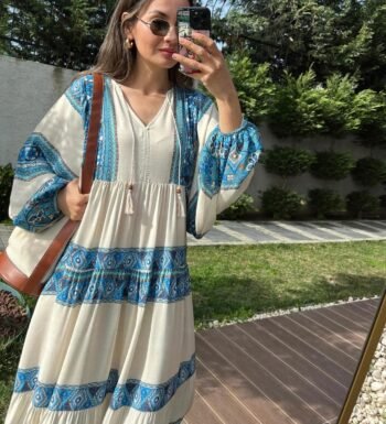 Sky Bloom Dress – Light Dark Blue Elegance 18,000 .د.ب